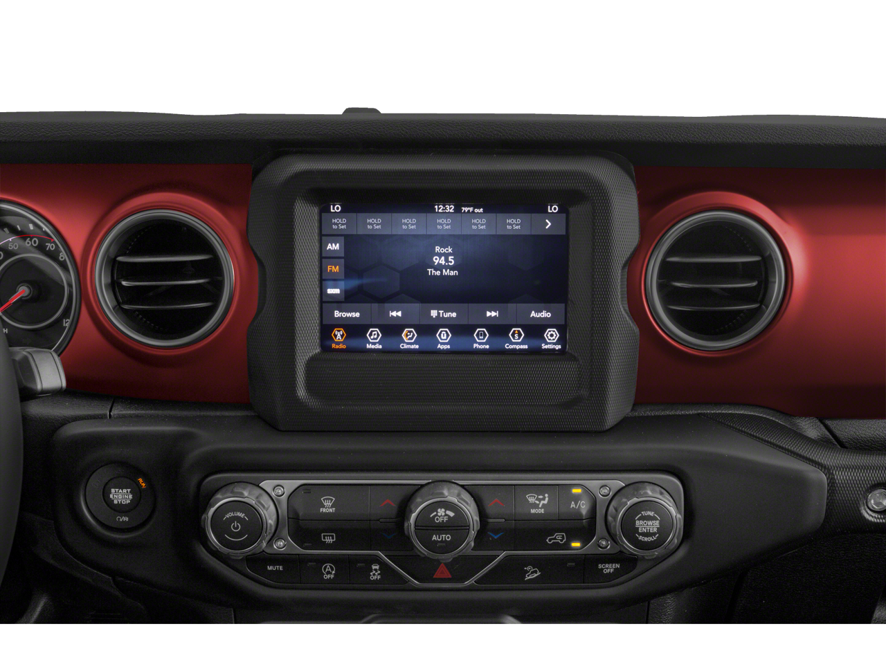 Equipped with 8.4 Radio & Premium Audio Group (1-Year SiriusXM Guardian Trial, 4G LTE Wi-Fi Hot Spot, 5-Year SiriusXM Traffic Service, 5-Year SiriusXM Travel Link Service, 8.4 Touchscreen Display, Auto-Dimming Rear-View Mirror, Emergency/Assistance Call, For Details, Visit DriveUconnect.ca, GPS Navigation, HD Radio, Radio: Uconnect 4C Nav w/8.4 Display, SiriusXM Traffic Plus, and SiriusXM Travel Link), Advanced Safety Group (Advanced Brake Assist and Full Speed Forward Collision Warning Plus), LED Lighting Group (Daytime Running Lamps LED Accents, Front LED Fog Lamps, LED Reflector Headlamps, and LED Taillamps), Quick Order Package 24R, Safety Group (Blind Spot & Cross Path Detection and ParkSense Rear Park Assist System), Trailer Tow & HD Electrical Group (240 Amp Alternator, 7 & 4 Pin Wiring Harness, 700 Amp Maintenance Free Battery, Auxiliary Switches, and Class II Receiver Hitch), 4-Wheel Disc Brakes, 4.10 Rear Axle Ratio, 8 Speakers, ABS brakes, Air Conditioning, Alloy wheels, Alpine Premium Audio System, AM/FM radio: SiriusXM, Apple CarPlay/Android Auto, Automatic temperature control, Black 3-Piece Hard Top, Brake assist, Compass, Delay-off headlights, Driver door bin, Driver vanity mirror, Dual front impact airbags, Dual front side impact airbags, Electronic Stability Control, Freedom Panel Storage Bag, Front anti-roll bar, Front Bucket Seats, Front Center Armrest w/Storage, Front dual zone A/C, Front fog lights, Front reading lights, Fully automatic headlights, Garage door transmitter, Heated door mirrors, Illuminated entry, Integrated roll-over protection, Leather steering wheel, Low tire pressure warning, Manufacturer's Statement of Origin (DISC), MOPAR All-Weather Floor Mats, MOPAR Hardtop Headliner, No Soft Top, Non-Lock Fuel Cap w/o Discriminator, Occupant sensing airbag, Outside temperature display, Panic alarm, ParkView Rear Back-Up Camera, Passenger door bin, Passenger vanity mirror, Performance Suspension, Power door mirrors, Power steering, Power windows, Premium Cloth Low-Back Bucket Seats, Radio data system, Radio: Uconnect 4 w/7 Display, Rear anti-roll bar, Rear reading lights, Rear Window Defroster, Rear Window Wiper/Washer, Remote keyless entry, Remote Proximity Keyless Entry, Security system, Speed control, Split folding rear seat, Steering wheel mounted audio controls, Tachometer, Telescoping steering wheel, Tilt steering wheel, Traction control, Trip computer, Variably intermittent wipers, Voltmeter, and Wheels: 17 x 7.5 Machined w/Black PocketS.