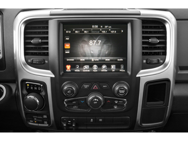 Equipped with 3.21 Rear Axle Ratio, 4-Wheel Disc Brakes, 40/20/40 Split Bench Seat, 6 Speakers, ABS brakes, Active Grille Shutters, Air Conditioning, Alloy wheels, AM/FM radio: SiriusXM, Black Exterior Mirrors, Brake assist, Bumpers: chrome, Center Hub, Compass, Delay-off headlights, Driver door bin, Dual front impact airbags, Dual front side impact airbags, Electronic Shift, Electronic Stability Control, Exterior Mirrors w/Heating Element, Front anti-roll bar, Front Armrest w/3 Cupholders, Front Center Armrest w/Storage, Front reading lights, Front wheel independent suspension, Fully automatic headlights, GPS Antenna Input, Heated door mirrors, Illuminated entry, Integrated Voice Command w/Bluetooth®, Low tire pressure warning, Occupant sensing airbag, Outside temperature display, Overhead airbag, Overhead console, Panic alarm, ParkView Rear Back-Up Camera, Passenger door bin, Passenger vanity mirror, Power door mirrors, Power steering, Power windows, Radio data system, Rear anti-roll bar, Rear seat center armrest, Rear step bumper, Remote keyless entry, Remote USB Port - Charge Only, Speed control, Storage Tray, Tachometer, Tilt steering wheel, Tip Start, Traction control, Trip computer, Variably intermittent wipers, and Voltmeter.