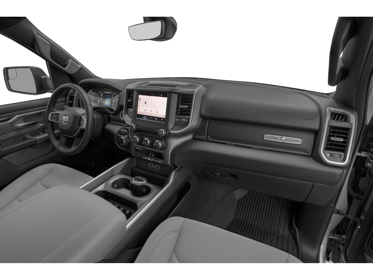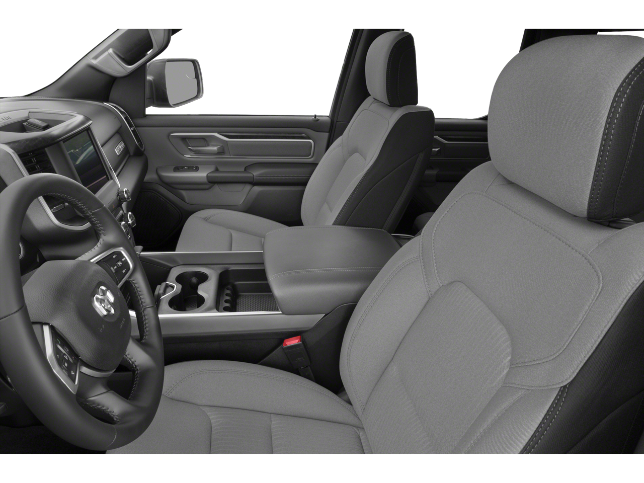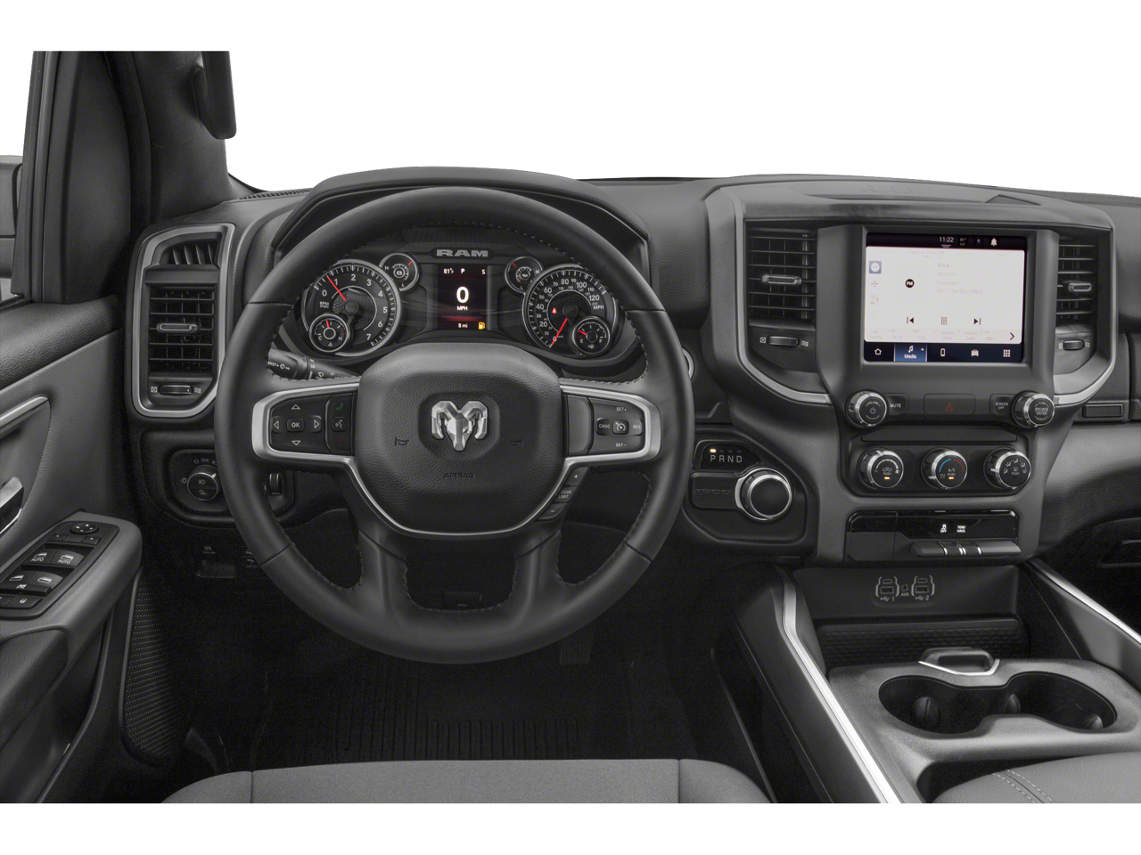 Equipped with Big Horn Level 1 Equipment Group (4G LTE Wi-Fi Hot Spot, Auto-Dimming Exterior Driver Mirror, Black Exterior Mirrors, Black Premium Power Mirrors, Bluetooth® Handsfree Phone & Audio, Connectivity - US/Canada, Convex Wide-Angle Mirror Insert, For More Info, Call 800-643-2112, Global Telematics Box Module (TBM), Glove Box Lamp, Google Android Auto, GPS Antenna Input, Power 2-Way Driver Lumbar Adjust, Power-Folding Mirrors, Radio: Uconnect 5 W w/8.4 Display, Rear Dome w/On/Off Switch Lamp, Rear Window Defroster, SiriusXM Radio Service, Universal Garage Door Opener, and USB Host Flip), Quick Order Package 25Z Big Horn, 3 Rear Seat Head Restraints, 3.21 Rear Axle Ratio, 4 Way Front Headrests, 4-Wheel Disc Brakes, 48V Belt Starter Generator, 6 Speakers, ABS brakes, Air Conditioning, Alloy wheels, AM/FM radio, Anti-Spin Differential Rear Axle, Brake assist, Bumpers: chrome, Cloth Bench Seat, Compass, Delay-off headlights, Driver door bin, Dual front impact airbags, Dual front side impact airbags, Electronic Stability Control, Emergency communication system: SiriusXM Guardian, Front anti-roll bar, Front Center Armrest w/Storage, Front fog lights, Front License Plate Bracket, Front reading lights, Front Seat Back Map Pockets, Front wheel independent suspension, Fully automatic headlights, Heated door mirrors, Illuminated entry, Integrated Voice Command w/Bluetooth®, Leather steering wheel, Low tire pressure warning, Manual Adjust 4-Way Front Passenger Seat, MOPAR Front & Rear Rubber Floor Mats, Occupant sensing airbag, Outside temperature display, Overhead airbag, Overhead console, Panic alarm, ParkView Rear Back-Up Camera, Passenger door bin, Passenger vanity mirror, Power door mirrors, Power steering, Power windows, Radio data system, Radio: Uconnect 3 w/5 Display, Rear 60/40 Folding Seat, Rear anti-roll bar, Rear seat center armrest, Rear step bumper, Rear Wheelhouse Liners, Remote keyless entry, Remote Start System, Speed control, Split folding rear seat, Steering wheel mounted audio controls, Tachometer, Telescoping steering wheel, Tilt steering wheel, Traction control, Trailer Brake Control, Trip computer, Variably intermittent wipers, Voltmeter, and Wheels: 18 x 8 Cast-Aluminum Painted.
