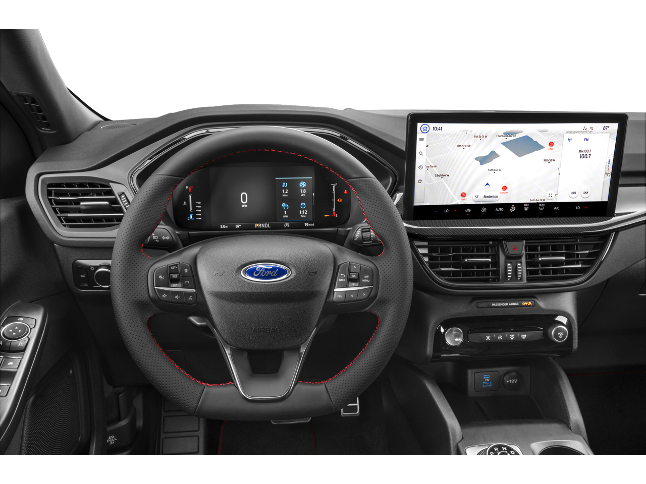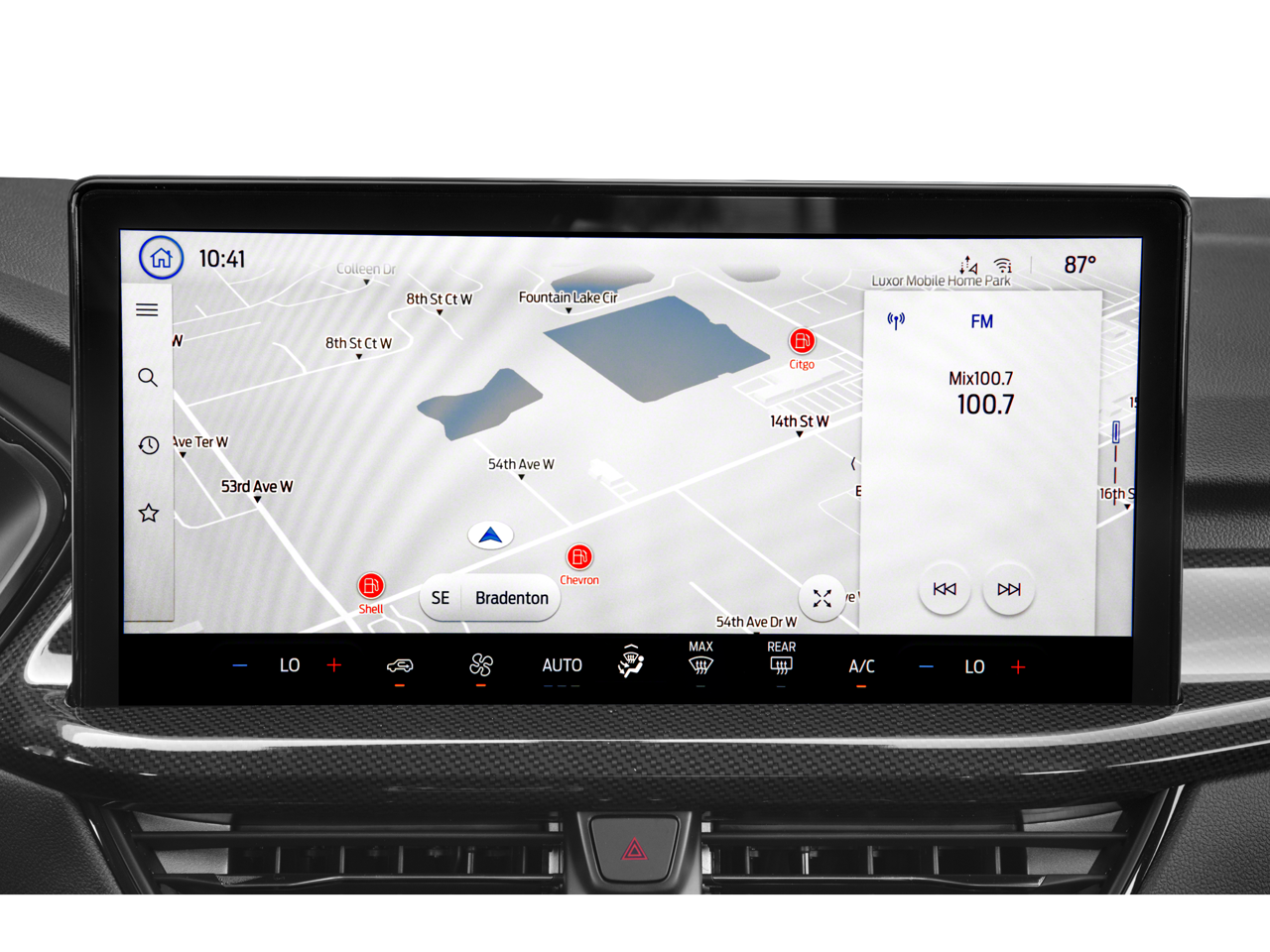 Equipped with Equipment Group 300A, 3.81 Axle Ratio, 4-Wheel Disc Brakes, 6 Speakers, ABS brakes, Air Conditioning, Alloy wheels, AM/FM radio: SiriusXM, AM/FM Stereo, Auto High-beam Headlights, Automatic temperature control, Brake assist, Bumpers: body-color, Compass, Delay-off headlights, Driver door bin, Driver vanity mirror, Dual front impact airbags, Dual front side impact airbags, Electronic Fuel Door Release, Electronic Stability Control, Emergency communication system: SYNC 4 911 Assist, Exterior Parking Camera Rear, FordPass Connect, Four wheel independent suspension, Front anti-roll bar, Front Bucket Seats, Front Center Armrest, Front dual zone A/C, Front License Plate Bracket, Front reading lights, Fully automatic headlights, Illuminated entry, Knee airbag, Low tire pressure warning, Neutral Towing Capability, Occupant sensing airbag, Outside temperature display, Overhead airbag, Overhead console, Panic alarm, Passenger door bin, Passenger vanity mirror, Pedestrian Alert Sounder, Power door mirrors, Power driver seat, Power Liftgate, Power steering, Power windows, Radio data system, Rear anti-roll bar, Rear reading lights, Rear seat center armrest, Rear window defroster, Rear window wiper, Remote keyless entry, Speed control, Speed-sensing steering, Speed-Sensitive Wipers, Split folding rear seat, Spoiler, Sport steering wheel, Steering wheel mounted audio controls, SYNC 4, Tachometer, Telescoping steering wheel, Tilt steering wheel, Traction control, Trip computer, Variably intermittent wipers, Vinyl/Cloth Front Sport Contour Bucket Seats, and Wheels: 18 Rock Metallic Painted Aluminum.