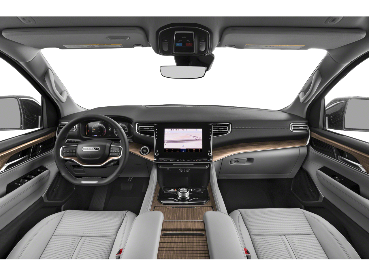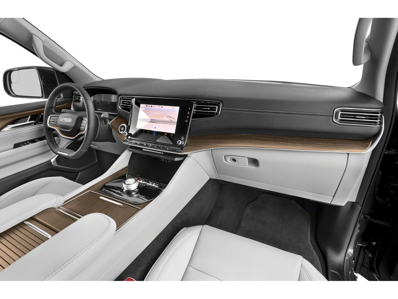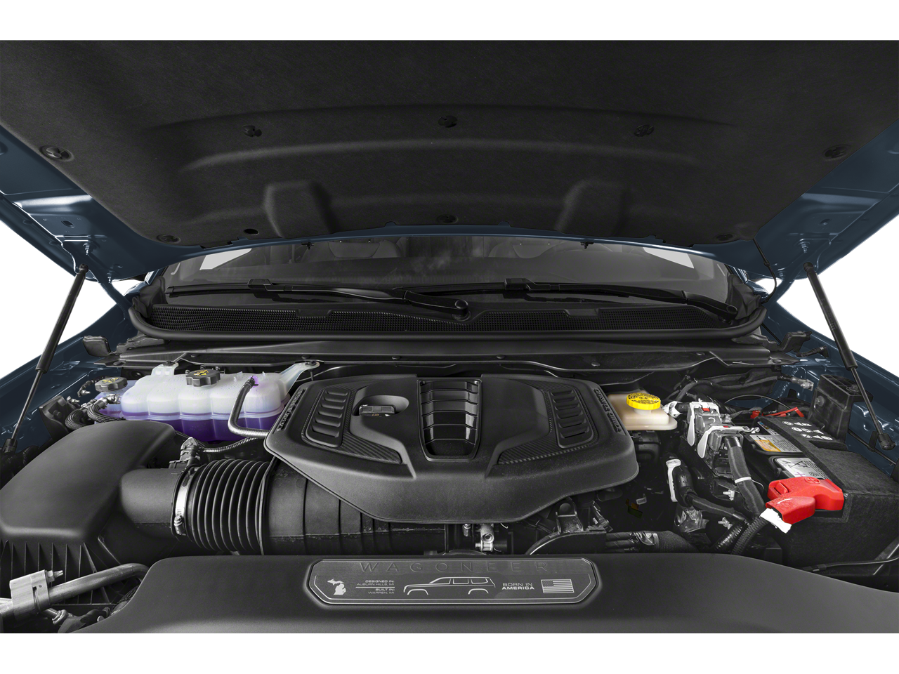 Equipped with Flexible Seating Group (40/20/40 2nd Row Bench Power Tip/Slide, 8-Passenger Seating, and Full Length Floor Console), Quick Order Package 25N, 10 Speakers, 3.55 Rear Axle Ratio, 3rd row seats: bench, 4-Wheel Disc Brakes, ABS brakes, Adjustable pedals, Air Conditioning, Alloy wheels, AM/FM radio: SiriusXM with 360L, Anti-whiplash front head restraints, Apple CarPlay/Android Auto, Audio memory, Auto High-beam Headlights, Auto-dimming door mirrors, Auto-dimming Rear-View mirror, Auto-leveling suspension, Automatic temperature control, Brake assist, Bumpers: body-color, Compass, Delay-off headlights, Driver door bin, Driver vanity mirror, Driver's Seat Mounted Armrest, Dual front impact airbags, Dual front side impact airbags, Electronic Stability Control, Emergency communication system: Wagoneer Connect, Exterior Parking Camera Rear, Four wheel independent suspension, Front anti-roll bar, Front Bucket Seats, Front Center Armrest w/Storage, Front dual zone A/C, Front fog lights, Front reading lights, Fully automatic headlights, Garage door transmitter, Genuine wood console insert, Genuine wood dashboard insert, Genuine wood door panel insert, Heated door mirrors, Heated front seats, Heated rear seats, Heated steering wheel, Illuminated entry, Knee airbag, Leather Trimmed Bucket Seats, Low tire pressure warning, Memory seat, Navigation System, Normal Duty Suspension, Occupant sensing airbag, Outside temperature display, Overhead airbag, Overhead console, Panic alarm, Passenger door bin, Passenger seat mounted armrest, Passenger vanity mirror, Pedal memory, Power adjustable front head restraints, Power door mirrors, Power driver seat, Power Liftgate, Power passenger seat, Power steering, Power windows, Radio data system, Radio: Uconnect 5 Nav w/10.1 Display, Rain sensing wipers, Rear air conditioning, Rear anti-roll bar, Rear reading lights, Rear seat center armrest, Rear window defroster, Rear window wiper, Reclining 3rd row seat, Remote keyless entry, Security system, Speed control, Speed-sensing steering, Speed-Sensitive Wipers, Split folding rear seat, Steering wheel memory, Steering wheel mounted audio controls, Tachometer, Telescoping steering wheel, Tilt steering wheel, Traction control, Trip computer, Turn signal indicator mirrors, Variably intermittent wipers, Ventilated front seats, Voltmeter, and Wheels: 20 x 9.0 Aluminum (DISC)