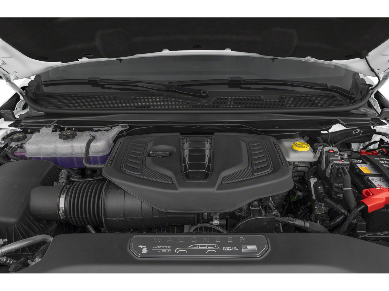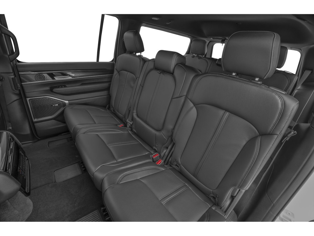 Equipped with Quick Order Package 25J, 10 Speakers, 118 MPH Maximum Speed Calibration, 3.55 Rear Axle Ratio, 3rd row seats: bench, 4-Wheel Disc Brakes, ABS brakes, Adjustable pedals, Air Conditioning, Alloy wheels, AM/FM radio: SiriusXM with 360L, Anti-whiplash front head restraints, Apple CarPlay/Android Auto, Audio memory, Auto-dimming door mirrors, Auto-dimming Rear-View mirror, Auto-leveling suspension, Automatic temperature control, Brake assist, Bumpers: body-color, Compass, Delay-off headlights, Driver door bin, Driver vanity mirror, Driver's Seat Mounted Armrest, Dual front impact airbags, Dual front side impact airbags, Electronic Stability Control, Emergency communication system: Wagoneer Connect, Exterior Parking Camera Rear, Four wheel independent suspension, Front anti-roll bar, Front Bucket Seats, Front Center Armrest w/Storage, Front dual zone A/C, Front fog lights, Front reading lights, Fully automatic headlights, Garage door transmitter, Genuine wood console insert, Genuine wood dashboard insert, Genuine wood door panel insert, Heated door mirrors, Heated front seats, Heated rear seats, Heated steering wheel, Illuminated entry, Knee airbag, Leather Trimmed Bucket Seats, Low tire pressure warning, Memory seat, Navigation System, Normal Duty Suspension, Occupant sensing airbag, Outside temperature display, Overhead airbag, Overhead console, Panic alarm, Passenger door bin, Passenger seat mounted armrest, Passenger vanity mirror, Pedal memory, Power adjustable front head restraints, Power door mirrors, Power driver seat, Power Liftgate, Power passenger seat, Power steering, Power windows, Radio data system, Radio: Uconnect 5 Nav w/10.1 Display, Rain sensing wipers, Rear air conditioning, Rear anti-roll bar, Rear dual zone A/C, Rear reading lights, Rear seat center armrest, Rear window defroster, Rear window wiper, Reclining 3rd row seat, Remote keyless entry, Security system, Speed control, Speed-sensing steering, Speed-Sensitive Wipers, Split folding rear seat, Steering wheel memory, Steering wheel mounted audio controls, Tachometer, Telescoping steering wheel, Tilt steering wheel, Traction control, Trip computer, Turn signal indicator mirrors, Variably intermittent wipers, Ventilated front seats, Voltmeter, and Wheels: 20 x 9.0 Premium 2 Aluminum.