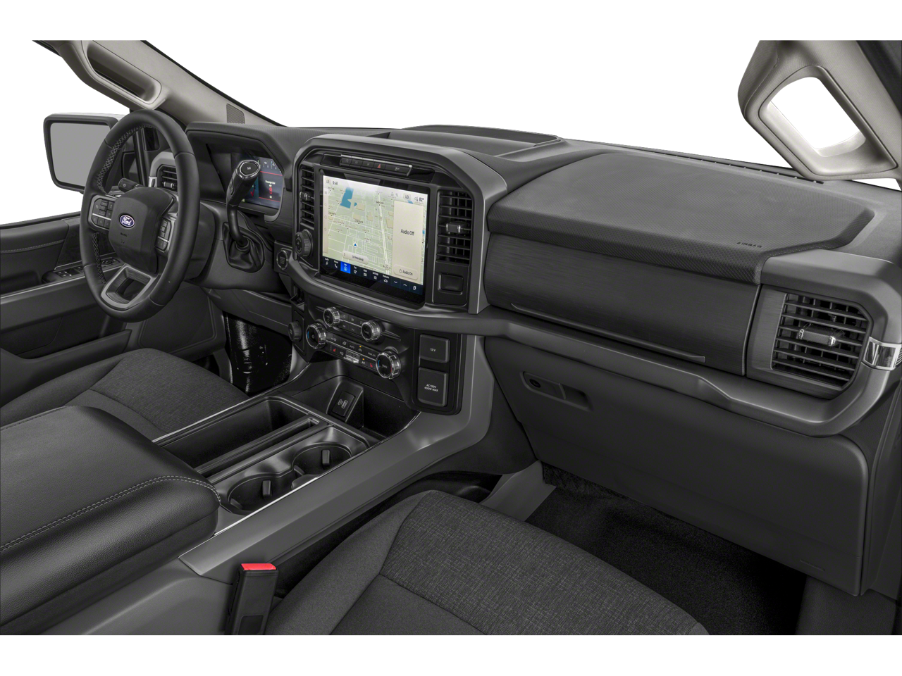 Equipped with Equipment Group 301A Standard (6 Angular Bright Anodized Step Bar, Black Painted Grille w/Chrome Center Bar, Chrome Door & Tailgate Handles, Chrome Single-Tip Exhaust, Cloth 40/20/40 Front Seat w/Console, Dual-Zone Electronic Automatic Temperature Control, and Wrapped Steering Wheel), 6 Speakers, Air Conditioning, AM/FM radio: SiriusXM with 360L, Radio data system, Radio: AM/FM Stereo w/SiriusXM 360L, Rear window defroster, SYNC 4 w/Enhanced Voice Recognition, 3.31 Axle Ratio, 4-Wheel Disc Brakes, ABS brakes, Alloy wheels, Auto High-beam Headlights, Brake assist, Bumpers: chrome, Chrome wheels, Cloth 40/20/40 Front Seat, Compass, Delay-off headlights, Driver door bin, Driver vanity mirror, Dual front impact airbags, Dual front side impact airbags, Electronic Stability Control, Emergency communication system: SYNC 4 911 Assist, Front anti-roll bar, Front Center Armrest, Front fog lights, Front License Plate Bracket, Front reading lights, Front wheel independent suspension, Fully automatic headlights, Heated door mirrors, Illuminated entry, Internet access capable: FordPass Connect 5G, Low tire pressure warning, Occupant sensing airbag, Outside temperature display, Overhead airbag, Overhead console, Panic alarm, Passenger door bin, Passenger vanity mirror, Power door mirrors, Power steering, Power windows, Rear Parking Sensors, Rear reading lights, Rear step bumper, Remote keyless entry, Security system, Speed control, Split folding rear seat, Steering wheel mounted audio controls, Tachometer, Telescoping steering wheel, Tilt steering wheel, Traction control, Trip computer, Variably intermittent wipers, Voltmeter, and Wheels: 18 Chrome-Like PVD.