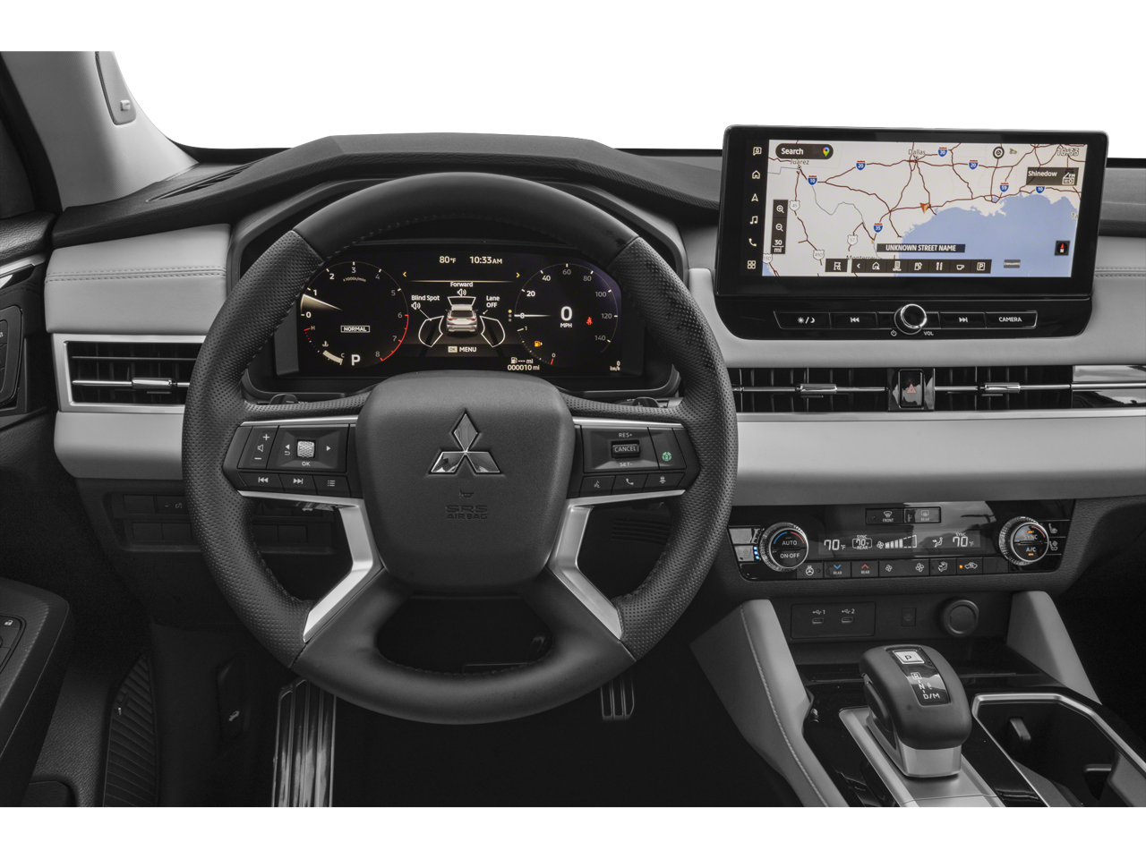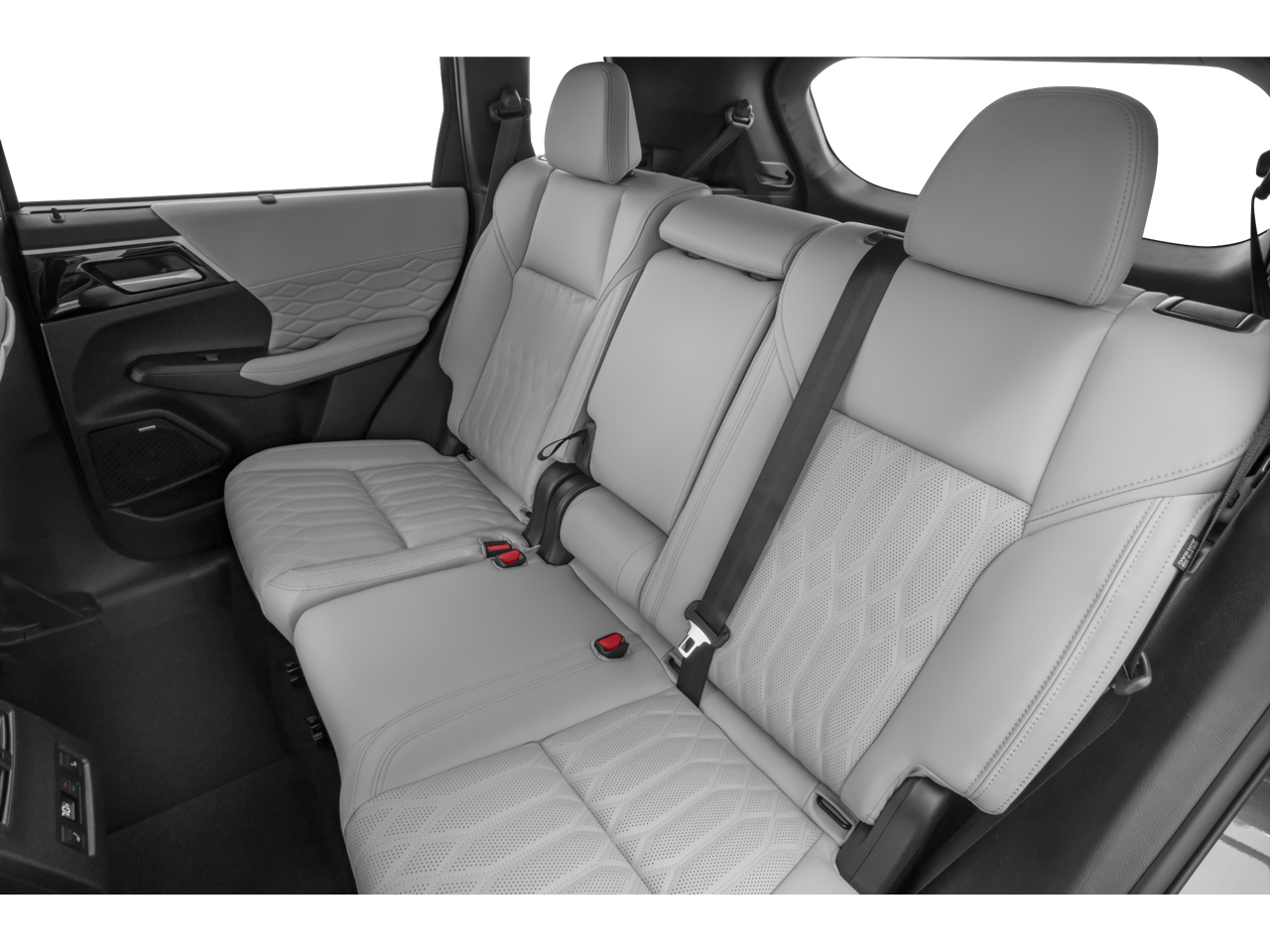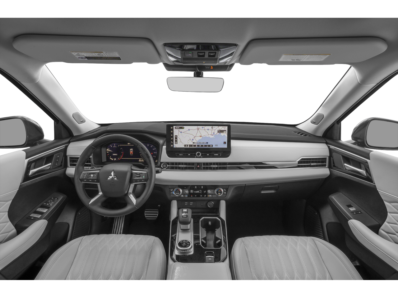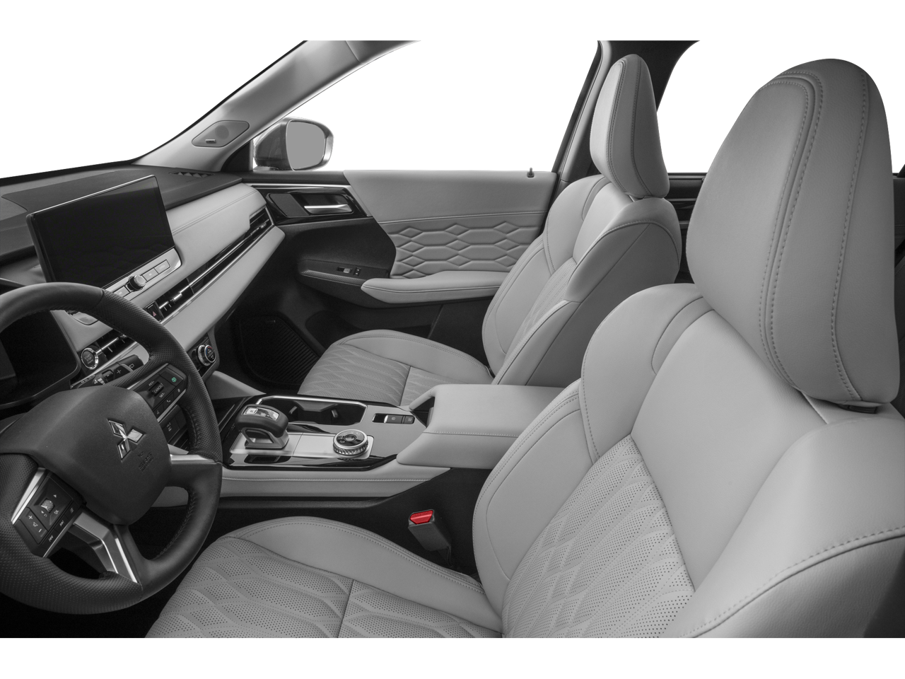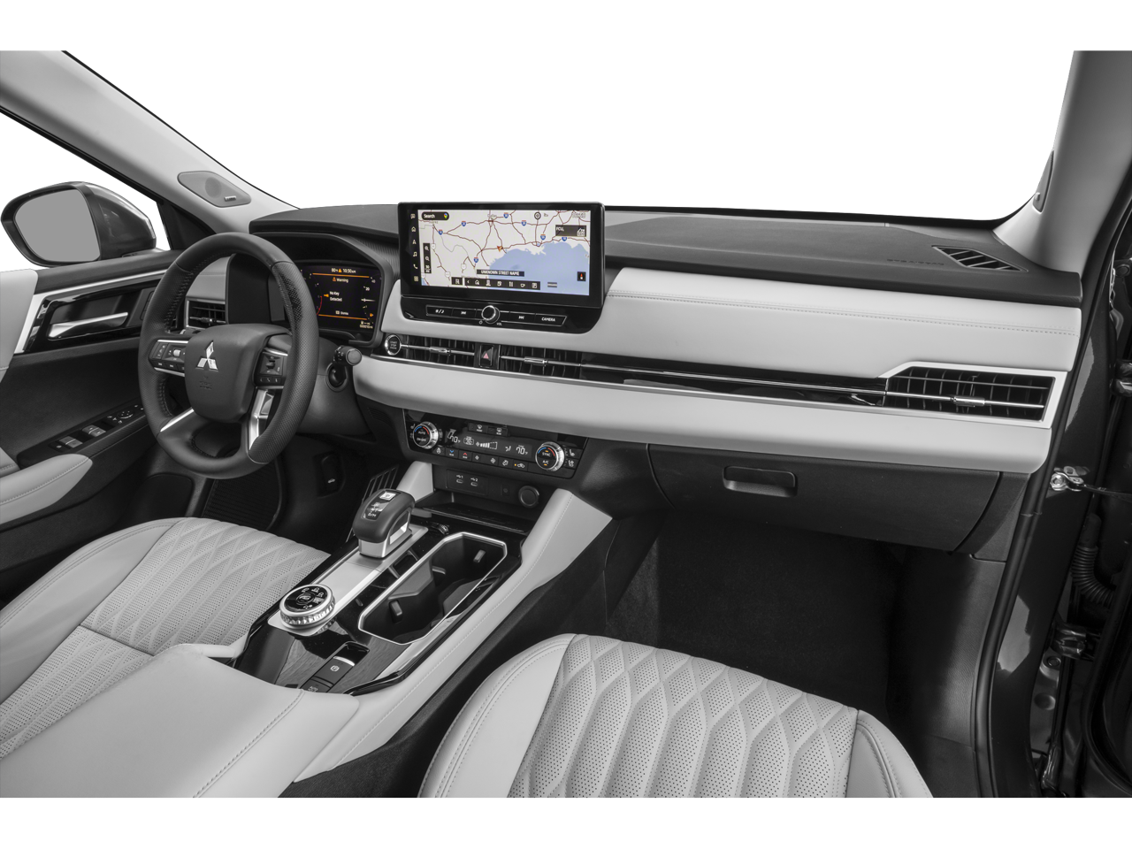 Equipped with 3rd row seats: split-bench, 4-Wheel Disc Brakes, 8 Speakers, ABS brakes, Air Conditioning, Alloy wheels, AM/FM radio: SiriusXM, Android Auto & Apple CarPlay, Auto High-beam Headlights, Auto-dimming Rear-View mirror, Automatic temperature control, Brake assist, Bumpers: body-color, Driver door bin, Driver vanity mirror, Dual front impact airbags, Dual front side impact airbags, Electronic Stability Control, Emergency communication system: Mitsubishi Connect w/ 24-month trial, Exterior Parking Camera Rear, Four wheel independent suspension, Front anti-roll bar, Front Bucket Seats, Front Center Armrest w/Storage, Front dual zone A/C, Front fog lights, Front reading lights, Fully automatic headlights, Garage door transmitter: HomeLink, Heated door mirrors, Heated Front Bucket Seats, Heated front seats, Heated rear seats, Heated steering wheel, Illuminated entry, Knee airbag, Leather Appointed Seating Surfaces, Leather Shift Knob, Leather steering wheel, Low tire pressure warning, Memory seat, Navigation System, Occupant sensing airbag, Outside temperature display, Overhead airbag, Overhead console, Panic alarm, Passenger door bin, Passenger vanity mirror, Power door mirrors, Power driver seat, Power Liftgate, Power moonroof: Panoramic, Power passenger seat, Power steering, Power windows, Radio data system, Radio: AM/FM 12.3 Navigation w/Smartphone-Link, Rain sensing wipers, Rear air conditioning, Rear anti-roll bar, Rear seat center armrest, Rear side impact airbag, Rear window defroster, Rear window wiper, Reclining 3rd row seat, Remote keyless entry, Security system, Speed control, Speed-Sensitive Wipers, Split folding rear seat, Spoiler, Steering wheel mounted audio controls, Tachometer, Telescoping steering wheel, Tilt steering wheel, Traction control, Trip computer, Turn signal indicator mirrors, Variably intermittent wipers, and Wheels: 20 Two-Tone Alloy.